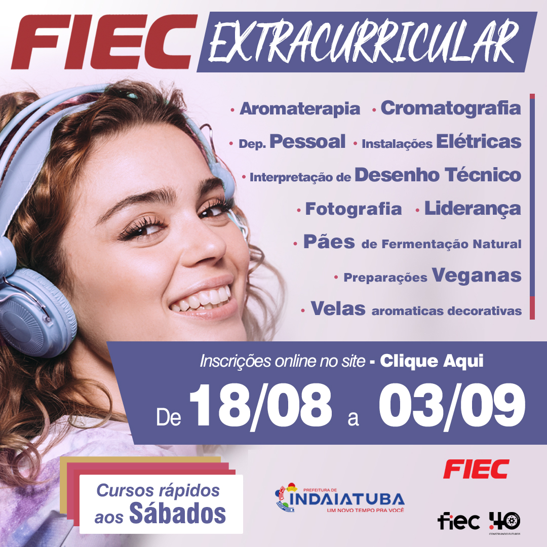 Diante de um mercado cada vez mais competitivo, a Fiec reforça seu compromisso com a qualificação profissional da comunidade, em parceria com a Prefeitura de Indaiatuba. Os cursos extracurriculares têm como foco a formação rápida, prática e acessível, valorizando não apenas a capacitação técnica, mas também o desenvolvimento pessoal dos alunos. A iniciativa conta com infraestrutura de qualidade e docentes experientes, reafirmando a Fiec como referência em educação profissional na região.